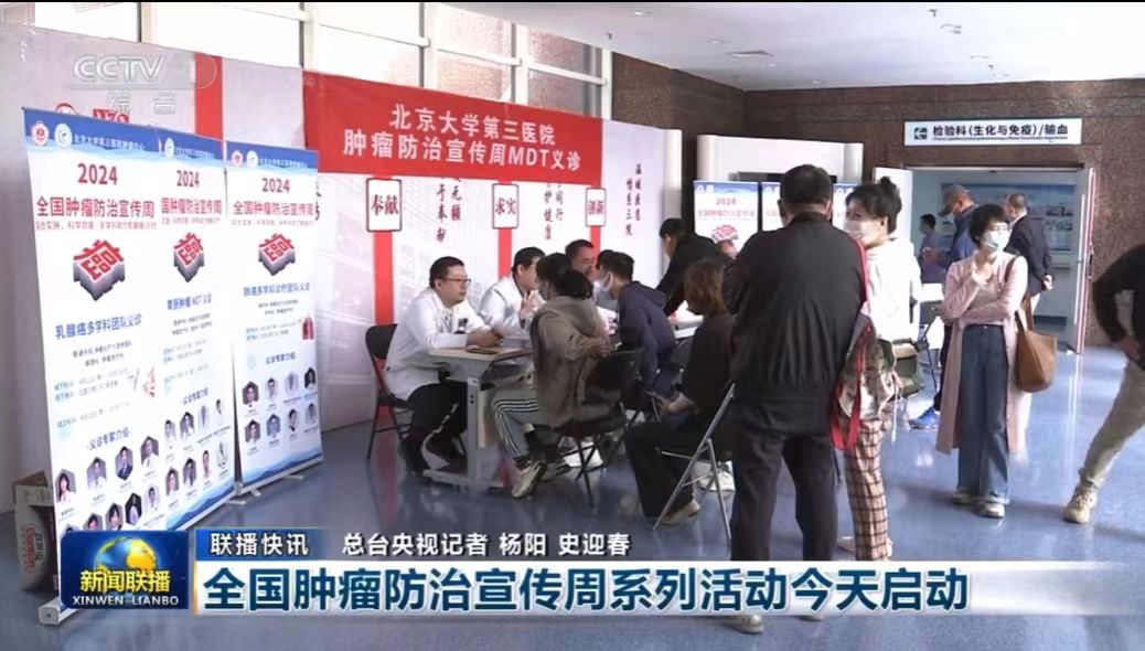 ——【CCTV13】4 月 15 日《新闻联播》,全国肿瘤防治宣传周系列活动启动,北医三院等医院启动了宣教、义诊等系列活动。链接地址:http://v.iqilu.com/jcdb/ysxwlb/202404/15/5509621.html