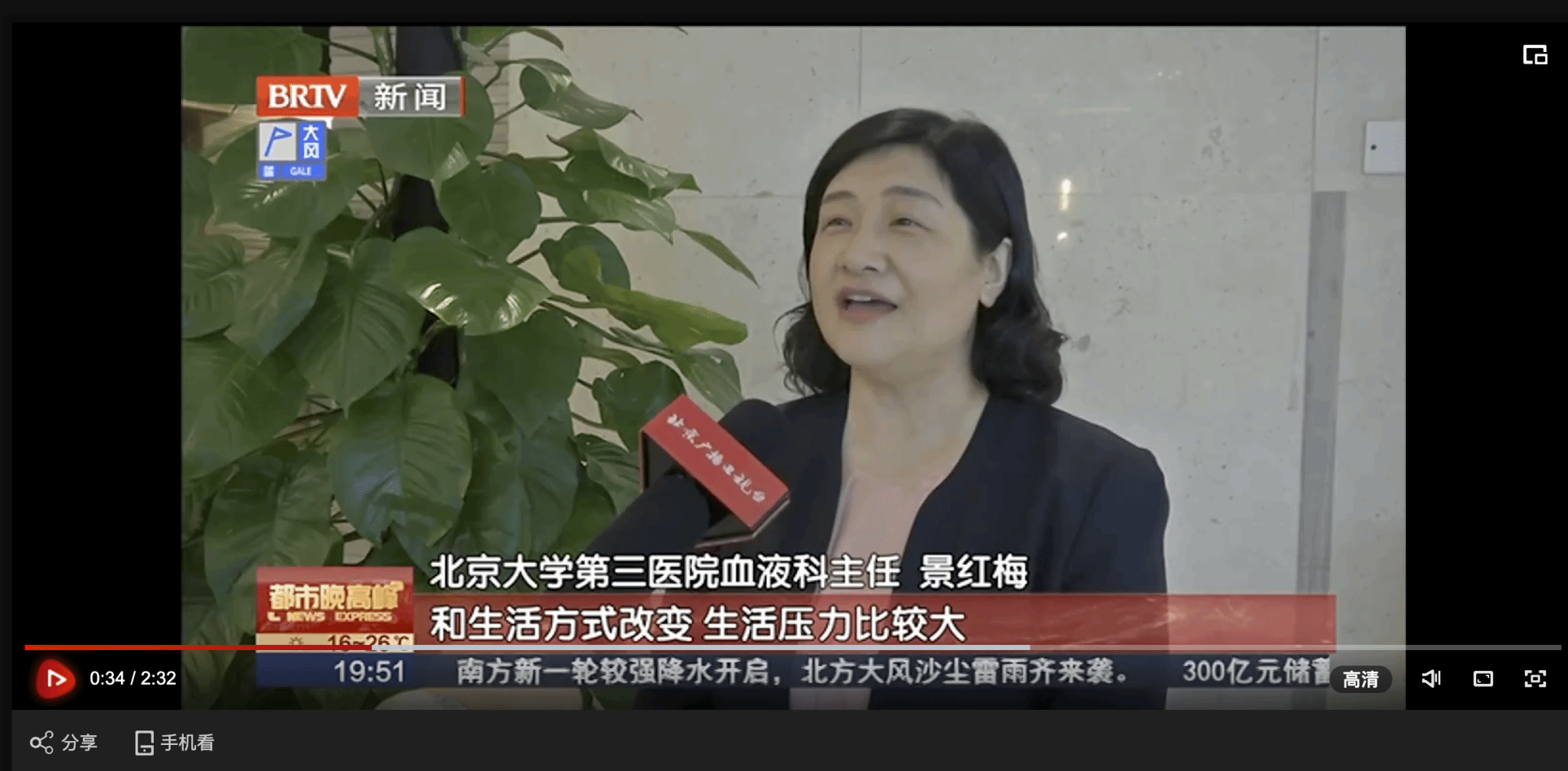 ——【BRTV9】5月10日《都市晚高峰》,北医三院成立全国首个多学科诊疗门诊模式的惰性淋巴瘤中心,北医三院血液科主任景红梅为大家科普了淋巴肿瘤的相关知识。链接:https://news.cctv.com/2024/05/11/VIDEnTpZN8MkcNsGyAR8MeeE240511.shtml