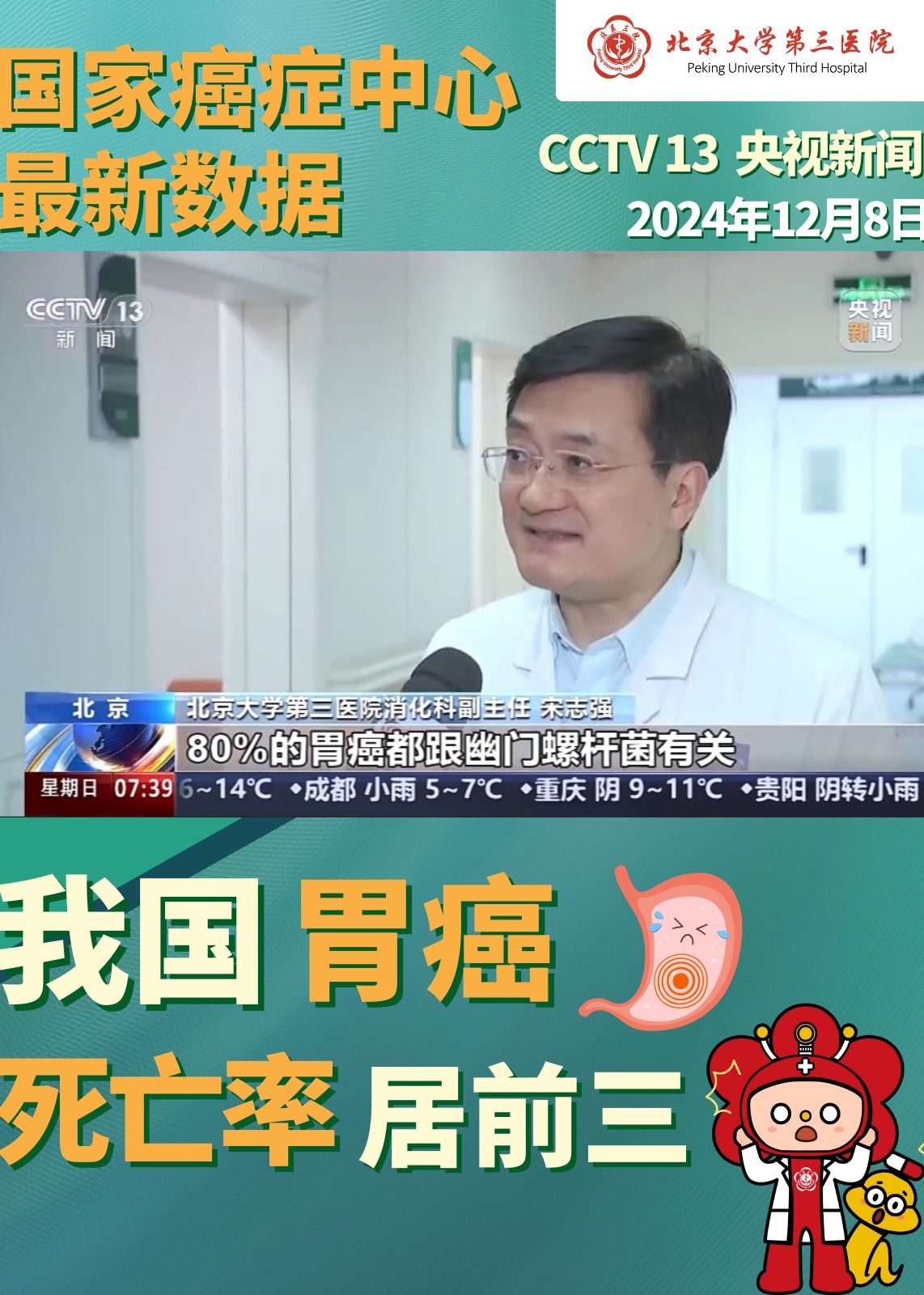 国家癌症中心最新数据·我国胃癌死亡率居前三 八成胃癌与幽门螺杆菌有关