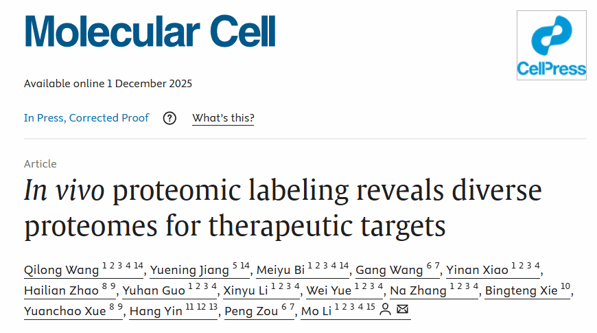 北医三院李默团队在Molecular Cell发表成果 研发“医化交叉”体内蛋白质组标记技术
