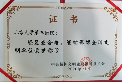 近日,在中央精神文明指导委员会公布的关于复查确认继续保留荣誉称号的全国文明单位名单中,我院榜上有名,继续蝉联“全国文明单位”称号,并得到首都精神文明建设委员会认可,获得“首都文明单位标兵”称号。 长期以...