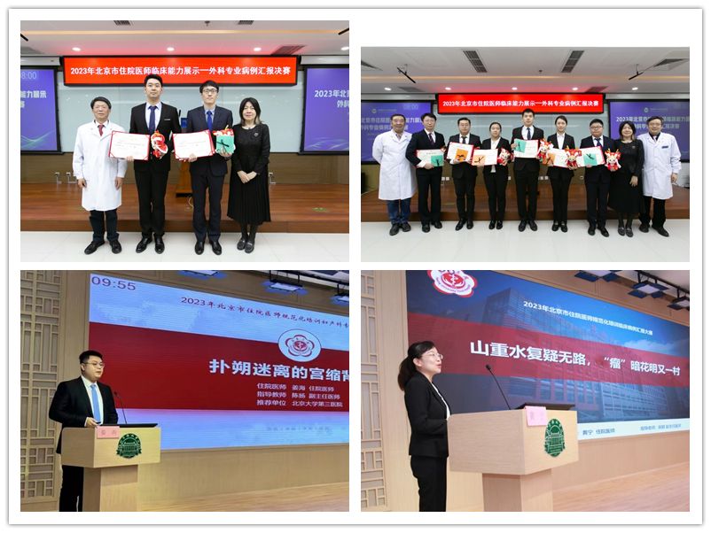 日前,北京市住院医师临床能力展示外科专业病例汇报决赛、北京市住院医师规范化培训妇产科专业临床病例汇报大赛分别举行。比赛面向全市所有的住培基地,由基地推荐选手参赛,我院选手凭借严谨的临床思维、流畅的表达能力在比赛中荣获佳绩。外科住院医师张家豪、张展奕分别荣获北京市外科住院医师病例汇报大赛一等奖、三等奖。妇产科住院医师姜海、黄宁分别荣获北京市妇产科住院医师病例汇报大赛二等奖、三等奖。右二为外科一等奖获得者张家豪左五为外科三等奖获得者张展奕妇产科二等奖获得者姜海汇报中妇产科三等奖获得者黄宁汇报中成绩的取得得益于北京大学第三医院多年来坚持开展住院医师病例汇报,...