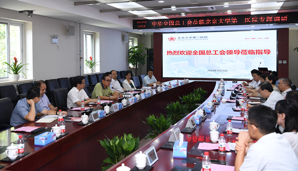 7月25日,全国总工会副主席、书记处书记蔡振华率调研组一行到北京大学第三医院(简称“北医三院”)开展“不忘初心、牢记使命”主题教育专题调研,全国总工会基层工作部部长金善文、民主管理处副调研员朱剑平,中国教...