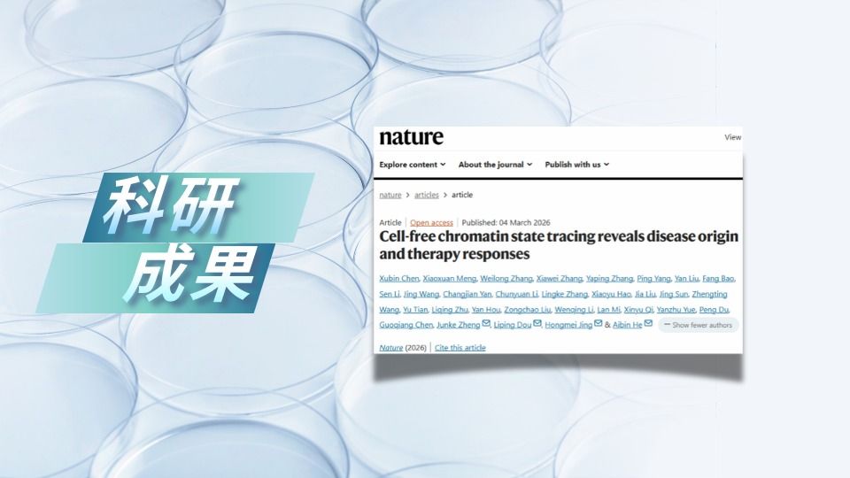 2026年3月4日,北京大学未来技术学院、北京大学-清华大学生命科学联合中心何爱彬团队,联合北京大学第三医院血液内科景红梅团队、中国人民解放军总医院血液病医学部窦立萍团队和上海交通大学医学院基础医学院郑俊克团队在国际权威期刊Nature(《自然》)上,在线发表了题为“Cell-free chromatin state tracing reveals disease origin and therapy responses”(游离DNA染色质状态检测技术揭示疾病起源与治疗应答)的文章。该研究开发了一项名为cf-...