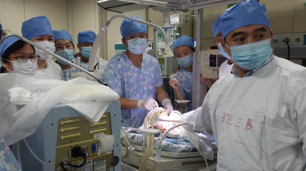 2013年11月7日7点58分,北医三院新生儿NICU医护人员正要早交班,突然1名胎龄32周、体重1620g、生后9天的早产儿出现心率下降至40次,血压测不出,呼吸停止,在场的医护人员立即争分夺秒的抢救,心肺复苏,气管插管,但...