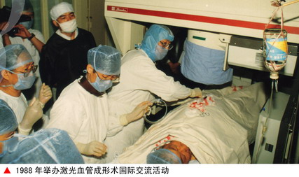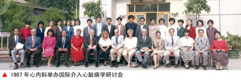 1987年5月陈明哲教授从美国留学8年重回北医三院,他带领大家成功举办了“心脏病新进展学习班”,邀请了数位当年美国著名的心血管学者和约300名的来自全国各地心血管专家教授参加了会议,这是国内首次高水平介绍冠心病介入性诊治的国际性学术会议,在业界引起了极大的反响。1987年10月北医三院心内科正式成立,陈明哲任主任,郭静萱任副主任。当年心内科完成开胸直视激光冠脉成形术,次年又完成经皮激光冠脉成形术(PTLCA),这在国内均属首例。手术的成功使我院心内科的声誉在国内同行中迅速提高,为今后的全面发展打下了坚实的基础。1989年,全国第一例外周血管旋切术也在我科完成。陈明哲教授成为当时国内颇有影响的心血管病学家。他讲学的足迹遍及大江南北,为国内50多家大学、医院送去了新理论和新技术,也使三院心内科崛起于学界。在院内,郭静萱、毛节明、陈凤荣等废寝忘食,夜以继日地在非心血管专用的X线造影设备上开展冠心病介入诊治及相关基础研究工作。他们白天做心导管手术,晚间和周末开展激光动物实验研究。1988年3月北医三院诚聘在国外已学有成就的韩启德教授、王宪博士加盟心内科,正式成立了心内科心血管研究室,并逐渐发展成为血管医学研究所,开创了我国心血管领域临床与基础研究相结合的先河。韩启德教授的受体亚型学说居国际领先水平,有力地推动了心内科学科发展。同年,北医一院的冯蕴玲副教授调来我科成立了超声心动图室。此后,张澍硕士从阜外医院毕业来三院心内科从事心电生理工作。1990年医院购置了当年最先进的Philip双向数字减影心血管造影机,建立了由心内科主管的心脏导管室。这种把心内科临床检查、治疗及基础研究诸单位一体化的模式,在当时国内是独此一家,在以后的发展中渐显优势。