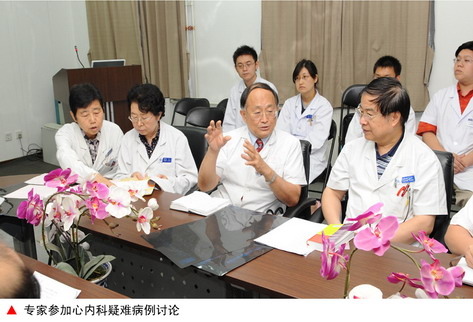 随着全国第一例激光冠脉成形术的成功,我院心血管专业临床诊治水平跃上了一个新的台阶。1990年始我科开展急性心肌梗死溶栓治疗,参加了“七五”国家攻关课题研究,是完成病例数量最多的单位,郭静萱教授成为国内著名的溶栓领域专家。1993年急性心肌梗死急诊介入治疗“24小时绿色通道”的开展,使我们在急诊冠脉介入治疗方面领先许多医院3-5年。以郭静萱,毛节明教授为首的治疗团队,适应证严格,技术精湛,救治了大量危重病人,急性心肌梗死住院病死率由百分之十五下降到百分之五,达到了国际先进水平。在这个团队中成长的郭丽君,张福春等医生逐渐成为心内科的骨干力量。同年我们率先将第一个注册的商业性支架—Palmaz-Schatz支架引入国内,到1995年已完成近200例冠脉支架手术,成为当时国内最主要的介入治疗中心之一(阜外医院,北医一院,北医三院,西安西京医院),郭静萱,毛节明教授成为国内著名介入专家。在八十年代广泛开展人工起搏(pace-maker)治疗基础上,1993年我院心内科开展射频消融(radio frequency)术,以后又有置入性心脏除颤器(ICD)的应用。在这方面负责任的先是张澍,刘晨,后是葛堪忆医生。