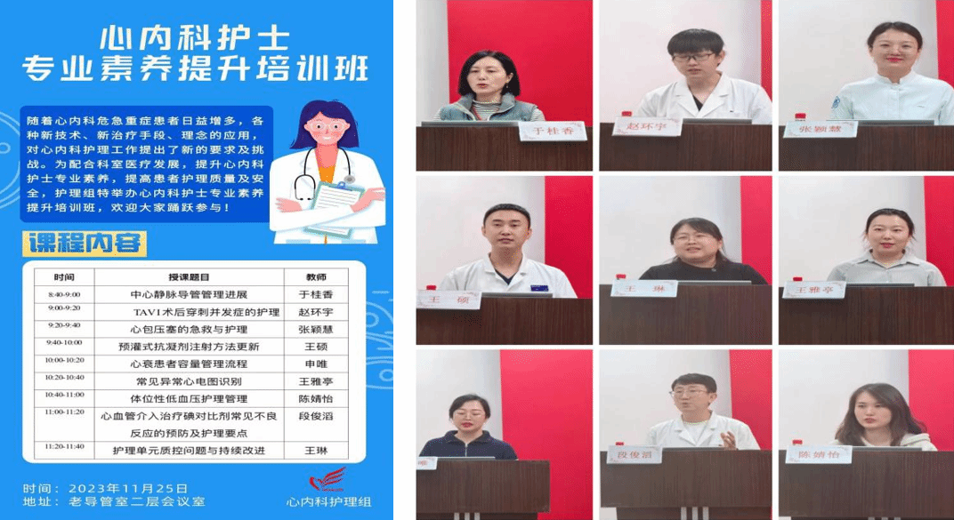 本次培训活动由专科护士徐东晓主持,课程涉及心内科常见疾病护理要点、异常心电图识别、危重症患者管理及并发症预防、介入相关并发症的预防与处理、患者护理质量及安全管理等。内容专业、丰富、前沿、贴近临床,提高了各位听课者的学习兴趣。
