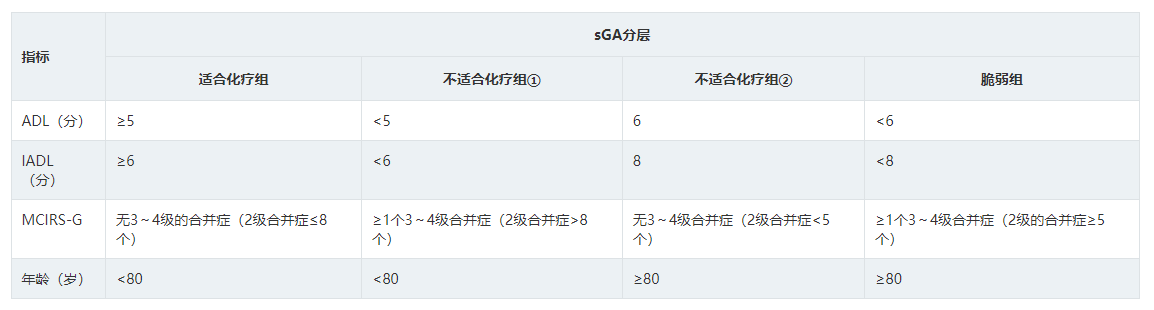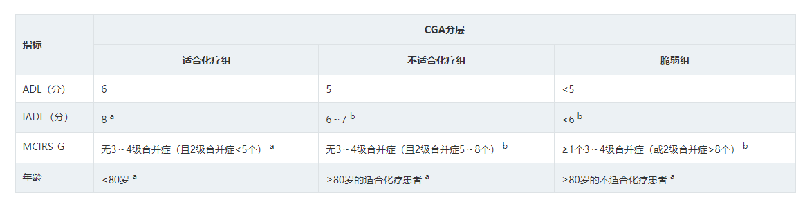 尽管关于CGA评分临床应用的数据主要来自初始治疗,但本共识仍推荐老年难治/复发DLBCL患者治疗前进行CGA评分,有助于临床决策。
