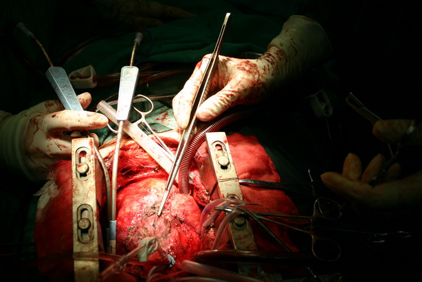 日前本科对一名主动脉瓣周脓肿合并心包炎的极危重患者成功进行了手术。 患者陈XX,最初因为发烧,下肢到本院就诊,超生心动诊断大量心包积液,于心内科予以穿刺抽液,抽出脓性液体,考虑为感染性心包炎。予以抗生素治疗。但经过2周治疗,患者仍有低热,而且全身水肿越来越重,患者喘憋明显,不能平卧,精神和食欲及其差,并伴有贫血。于是心内科请本科会诊共同讨论。由于患者超生心动提示主动脉瓣不能除外存在细菌赘生物,而患者的一般情况越来越差,如果继续下去,等待患者的只有耗竭。参考了心内科专家的意见后,孙凌波主任决定给患者进行手术。手术前,慎重起见,孙主任又请超生心动对患者进行了食道超生检查,结果发现患者三尖瓣上也存在赘生物,这样就使得手术难度加大,风险极大,在与患者家属交代病情后,患者家属抱着一线希望,积极要求手术。为了挽救患者,经过反复讨论和完善的术前检查后,孙主任为患者进行了手术。麻醉,消毒,一步一步有条不紊进行。切皮,开胸,心包果然向术前估计的一样粘连。小心地剥开心包后,出现的情况让手术台上的人都吃了一惊,沿着主动脉根部直至下腔静脉,有一个宽约2.5公分的带状结构,穿刺后里面有红色的动脉血。主动脉已经破了,若不是粘连的心包,可能患者早已经死亡了。孙主任马上建立体外循环,在体外循环辅助下,心脏停跳,切开心脏,里面的情景让在场的人更加皱起了眉头,主动脉根部大量的赘生物,主动脉壁已被腐蚀破溃,赘生物穿过根部到达右房,三尖瓣也受累。整个主动脉根部已经一片糟乱,失去了正常的解剖,要知道,主动脉是供应全身血液的主干道。这样的遭遇战让大家都很紧张。主刀医生沉着地把赘生物一点一点切除,一分一秒过去,赘生物被切除掉了。接下来需要重新建立起主动脉根部结构,一个带瓣人工血管复跳被缝合在了原来的主动脉根部,远端和自身血管相连。随着远端血管的吻合完毕。新的主动脉根部结构被建立起来。三尖瓣的赘生物也被清除了。随着患者心脏的复跳,手术成功了。在场的人都松了口气。然而,手术的成功只是一半。心脏手术术后监护对于患者能否最终康复起着决定性的作用。在孙主任的领导下,心脏外科全体医护人员精心看护,患者避免了了术后早期出血,术后感染,肺部并发症,营养不良等并发症的可能,一天天康复起来。而经过3周的治疗,患者已经可以自己活动自如,精神食欲更是得到了明显改善。家属更是连称奇迹,还赠送锦旗,对心外科医护人员表示感谢。 主动脉瓣周脓肿是感染性心内膜炎中很危重的一种疾病,手术死亡率极高,特别是患者主动脉已经破溃,这样的手术难度极大,此次对于此名患者成功的救治,显示了我科一流的水平,也标志着我科对于疑难心脏手术的处理处于国内先进水平。