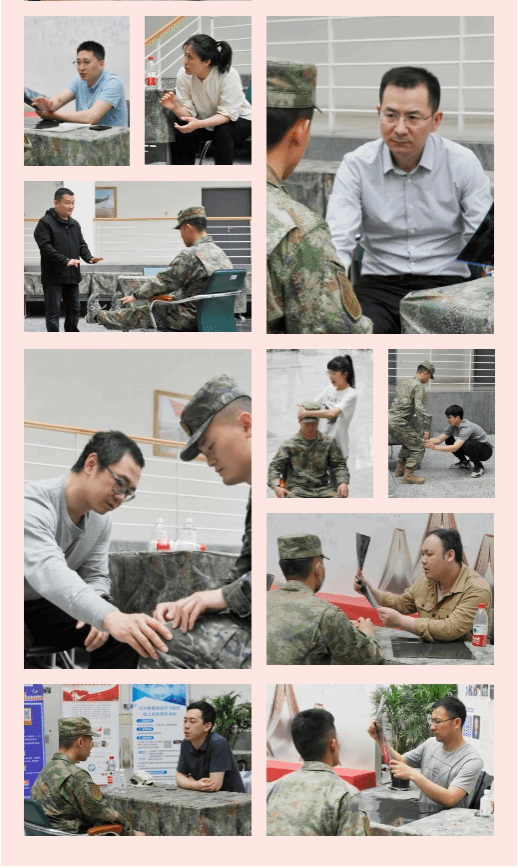上午9点30分,健康义诊活动正式开始,医疗、护理、康复团队迅速进入工作状态。陆军航空兵学院学员战士们列队整齐,有序等待。护士们根据学员战士病情进行专业的引导分诊,提供必要的护理服务。医生们认真聆听学员战士们的病情描述,进行详细的专科查体,针对学员们的伤病,尤其是常见训练损伤,如肌肉、韧带和肌腱损伤,提供了专业的医疗建议。康复师们结合病情,给予学员战士个性化的康复指导。本次健康义诊活动,我科20余名医护人员共接诊216名学员战士,提供了医疗、护理和康复全方位医疗服务。