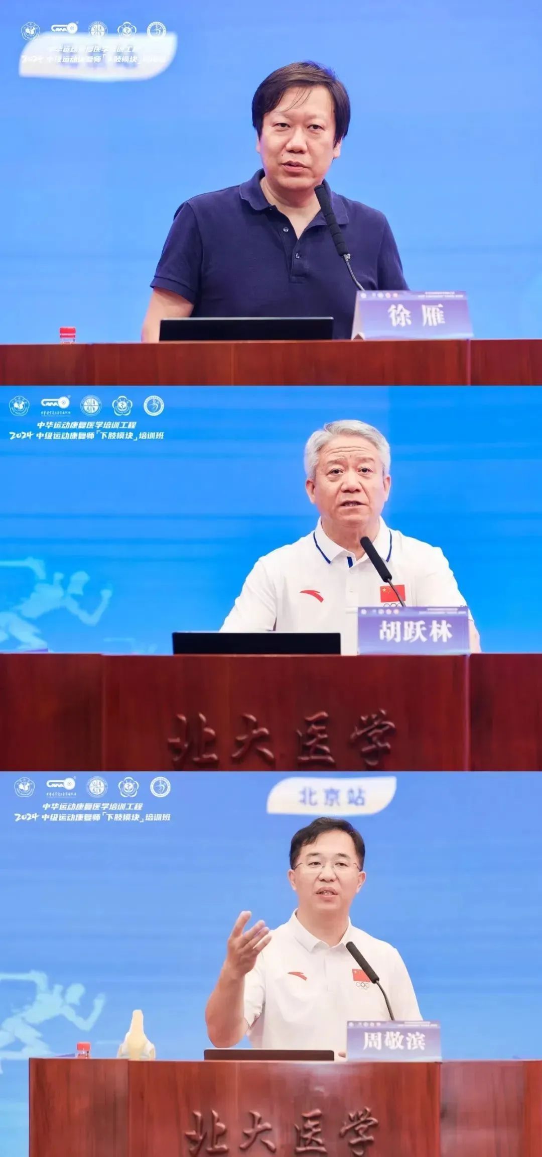 培训班由北医三院运动医学科副主任徐雁教授主持并致开幕词,国家体育总局运动医学研究所原所长、中华运动康复医学培训工程主任委员李国平教授和北医三院运动医学科主任、中华医学会运动医疗分会主任委员王健全教授分别以线上和现场出席方式为开班仪式致辞。