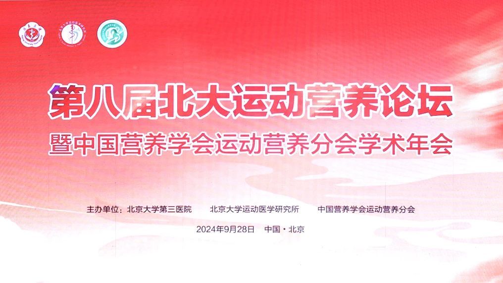 2024年9月28日上午由北京大学第三医院、北京大学运动医学研究所、中国营养学会运动营养分会在北京泰富酒店V5会议室共同主办了“第八届北大运动营养论坛暨中国营养学会运动营养分会学术年会。同时,本次会议也是北京大学第三医院、北京大学运动医学研究所主办的国家级继续教育项目”运动营养与健康研究进展”学习班。授予I类学分2分。近百名代表参会并聆听了报告,现场气氛热烈。