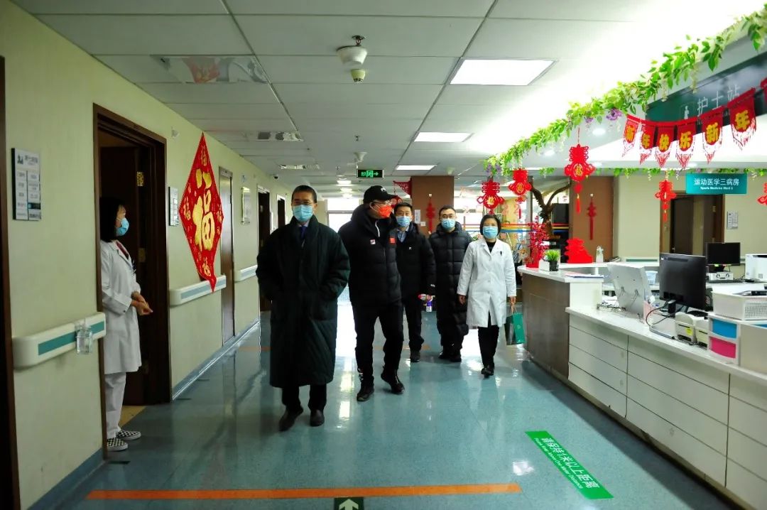 新春佳节来临之际,为给工作在一线的医护人员送去祝福,同时确保春节期间医疗质量与安全,切实做好疫情防控工作,作为中国奥运代表团医疗专家在外执行冬奥会医疗保障任务的王健全主任,特委派常务副主任、运动医学研究所余家阔所长带领核心组成员看望并慰问坚守在一线的运医医护人员。运动医学科党支部王成书记、崔国庆副主任、江东副主任、常翠青研究员以及王欣科护士长,分别针对疫情防控、医疗和护理安全、设备安全和“四防”(防火、防盗、防事故破坏、防自然灾害)等工作进行了细致全面的实地巡视,涉及本部住院病区、运动医学门诊、运医营养生化实验室、天工大厦运动医学实验室等多个区域,详细了解各区域的疫情防护、节日人员排班、安全保障等情况并向医护人员送上新春的祝福。