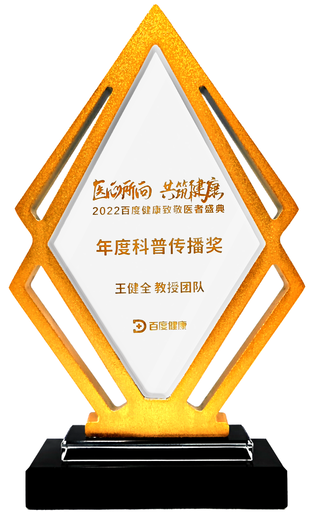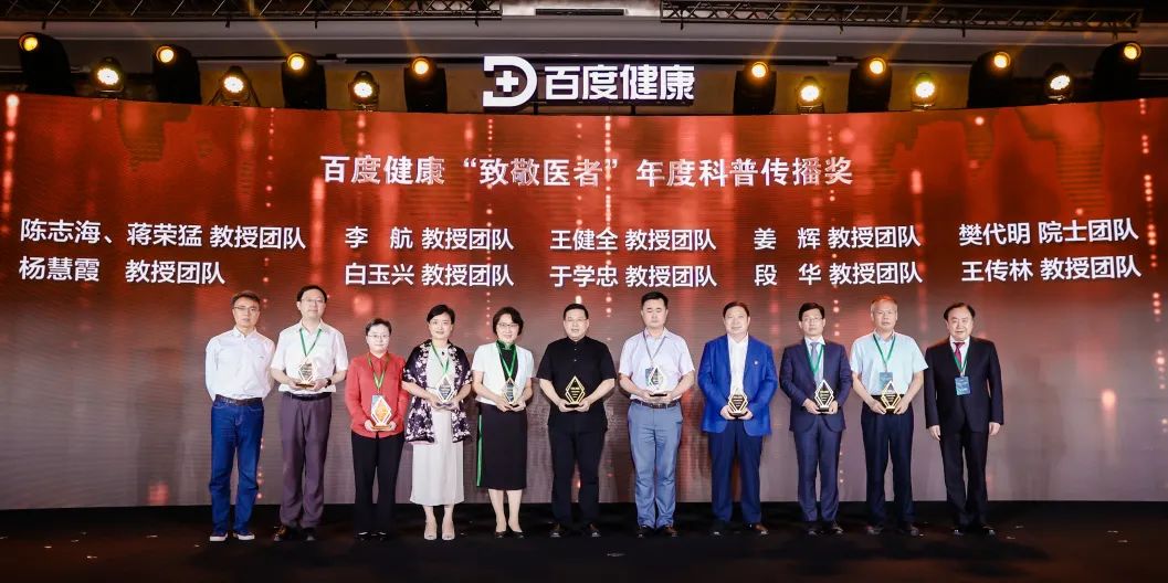 百度健康“致敬医者”年度科普传播奖是基于百度大数据,以用户检索浏览量为维度的年度奖项。