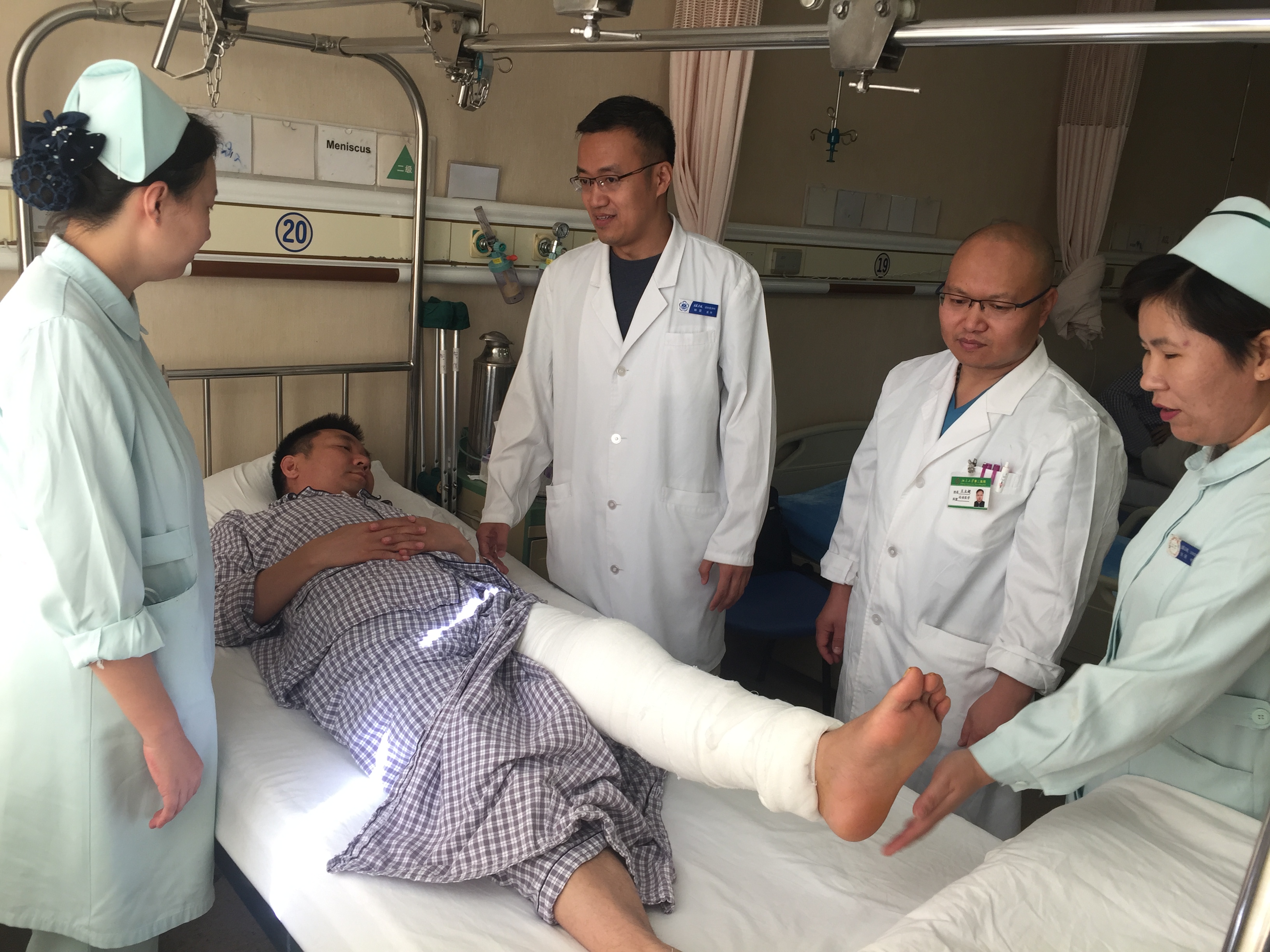 十月一日8:00晨交班前,运动医学研究所所长敖英芳教授就来到了病房,看望辛勤工作在一线的医护人员并检查工作。敖英芳教授询问了各个病房的运行与安全情况,代表全所同志们对大家在国庆节坚守工作岗位、“舍小家、顾大家”的精神表示感谢,并叮嘱医护人员注意节日期间的患者和病房安全,最后祝福大家节日快乐。早交班之后,病房的医生、护士及康复师们在各自的病房,开始了紧张而有序的工作。
