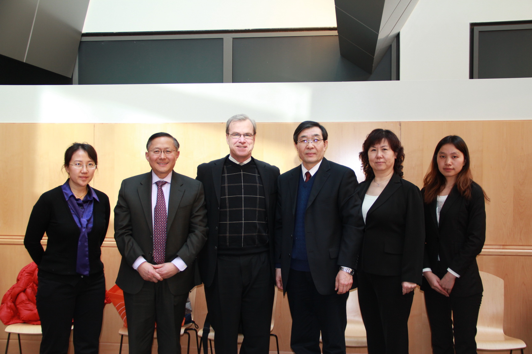 在美国麻省大学医学院中国合作发展中心副主任Hui Zou博士的陪同下,代表团会见了麻省大学医学院院长Terry Flotte教授、中国合作发展中心主任兼基因治疗中心主任Guangping Gao教授,就学生交流实习进行了讨论,并探讨了在基因治疗软骨损伤方面的合作。代表团随后参观了对方的附属康复医院Fairlawn Rehabilitation Hospital,了解对方在骨科和运动医学康复方面的发展经验。代表团还参观了UMass Memorial Medical Center,并与其运动医学主任Brian Busconi教授进行了讨论交流。