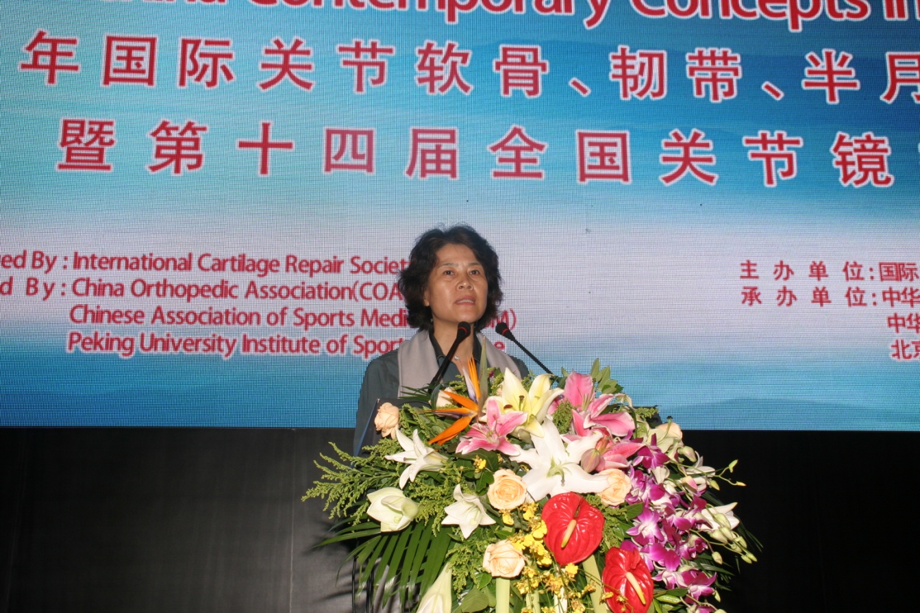 本次会议执行主席,中华医学会骨科学分会关节镜学组组长、亚洲关节镜学会主席、北京大学第三医院运动医学研究所敖英芳教授主持开幕式