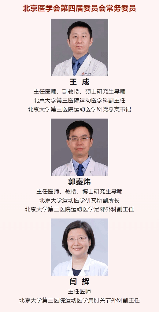 经民主选举,北医三院运动医学科副主任徐雁当选北京医学会第四届委员会主任委员、常委,王成、郭秦炜、闫辉当选常委,黄红拾、张辛当选委员,邵振兴当选委员兼任学会秘书。