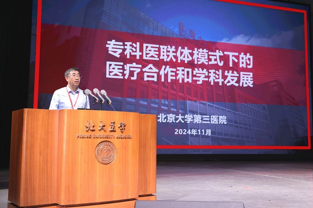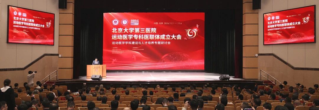 2024年11月1日下午13:30,北京大学第三医院运动医学专科医联体成立大会在医学部会议中心大礼堂顺利举行。第十四届全国人大常委会委员,山西省医学会会长卫小春教授,北京大学第三医院党委金昌晓书记,北京大学第三医院李蓉副院长,北京大学第三医院医务处胥雪冬处长,南方医科大学第三附属医院前院长,运动医学研究所所长蔡道章教授,北京大学第三医院运动医学专科医联体理事长、北京大学第三医院运动医学科主任王健全教授以及医联体34家常务理事单位,261家理事单位的专家代表,共500余人出席会议。