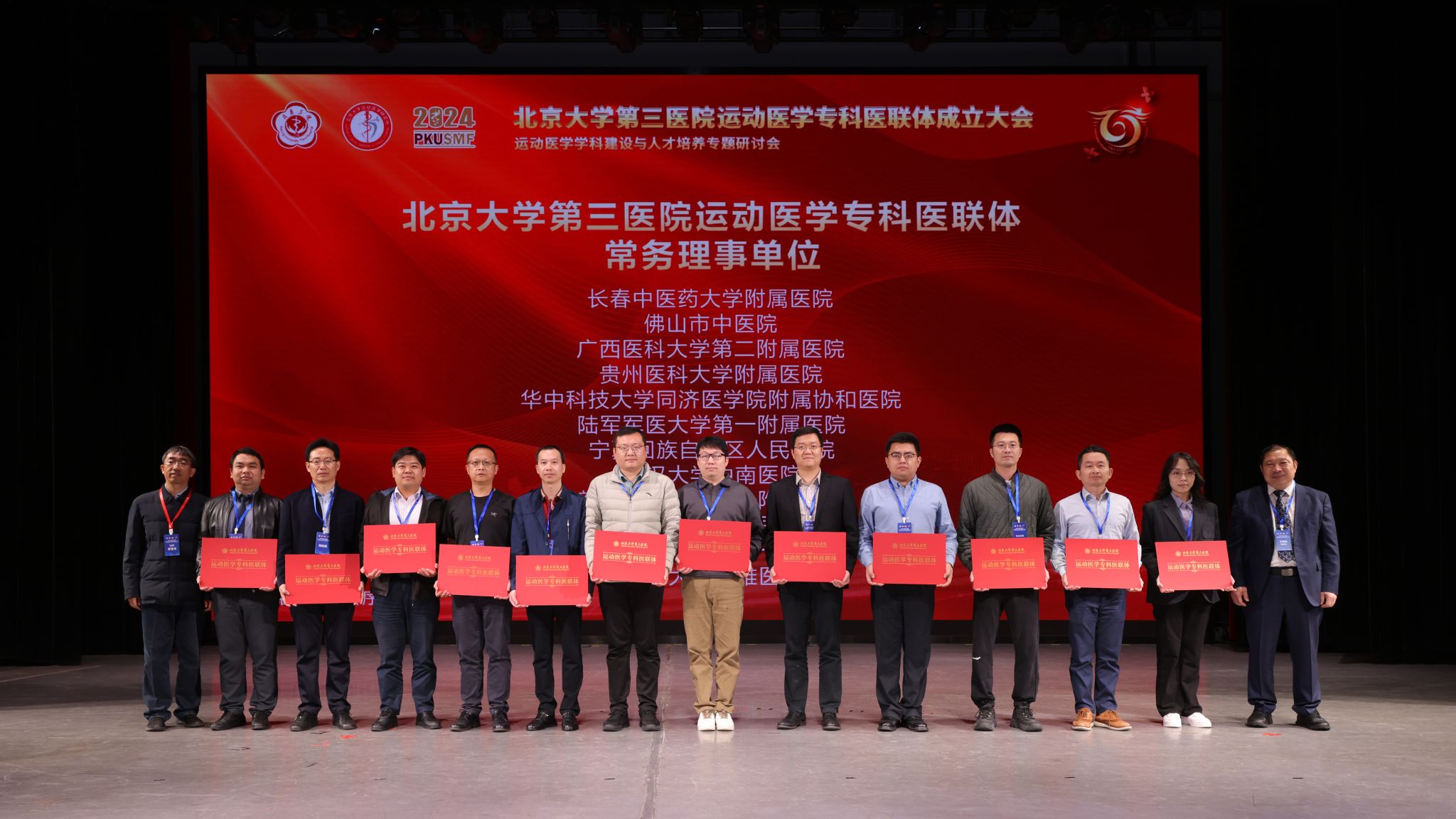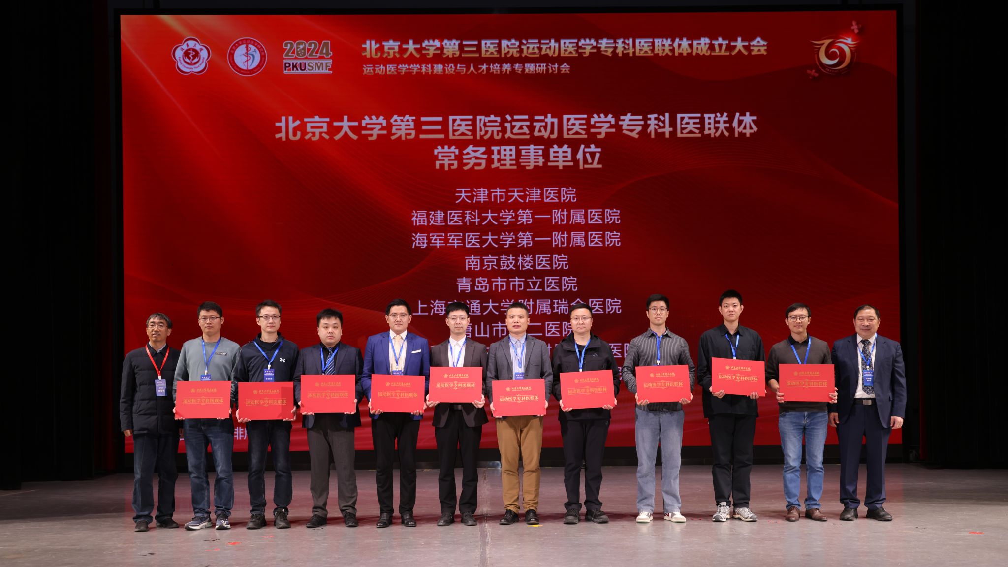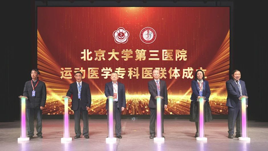 在参会人员共同见证下,与会领导站在启动台上,一起按下启动键,北京大学第三医院运动医学科专科医联体正式成立。随后,北医三院运动医学专科医联体向医联体常务理事单位颁发证书。