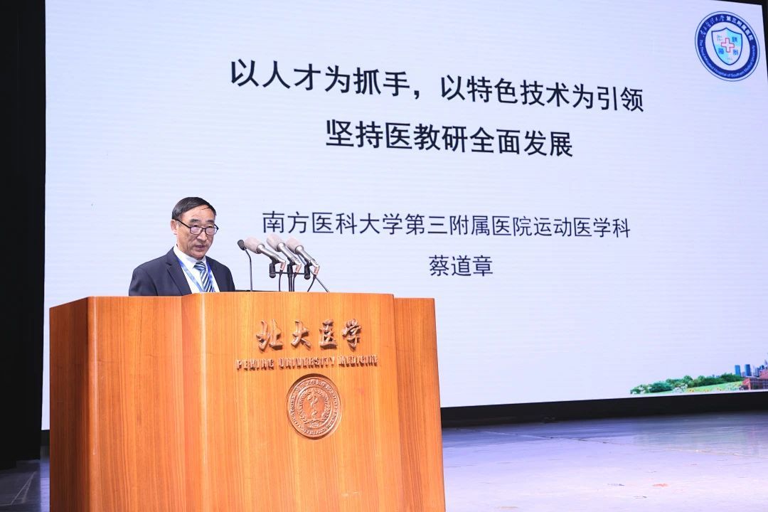蔡道章教授作为医联体单位代表发表致辞,他强调,运动医学专科医联体的成立是深化医疗改革、优化资源配置的关键一步,旨在提升医疗服务效能,满足群众健康需求。南医三院将积极参与医联体建设,通过整合共享资源、优化治理机制、落实分级诊疗等措施,双向提升医疗服务质量和效率。期待与北医三院等成员单位深化合作,共享经验技术,共促我国运动医学发展。