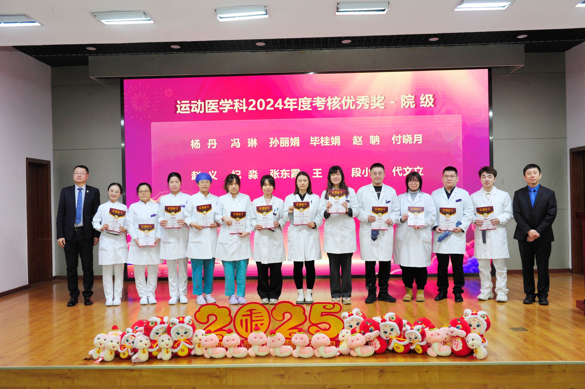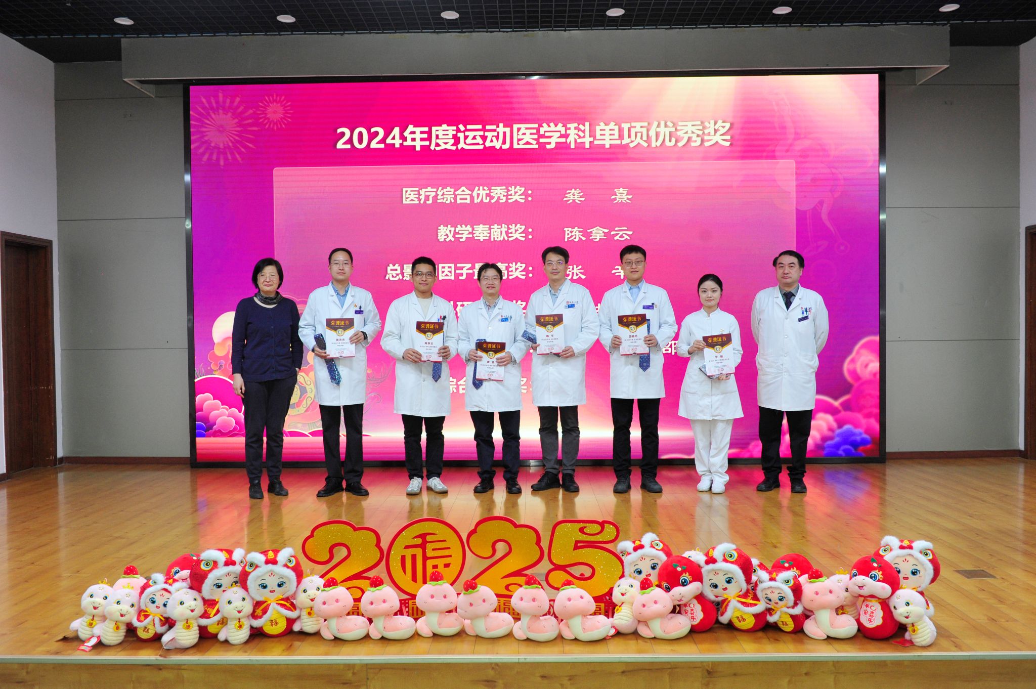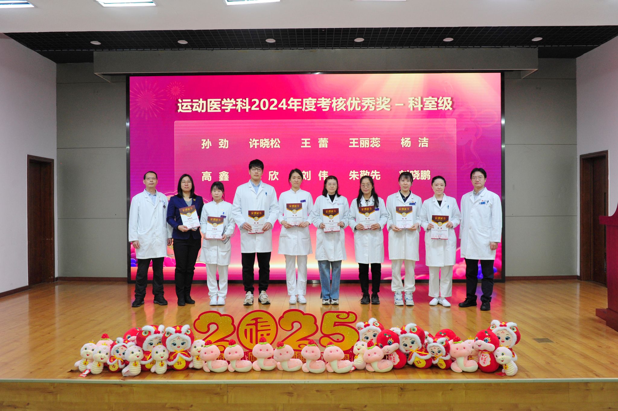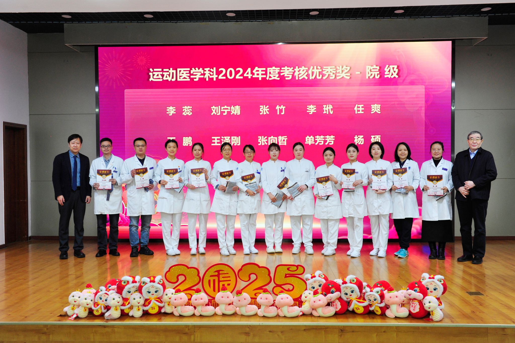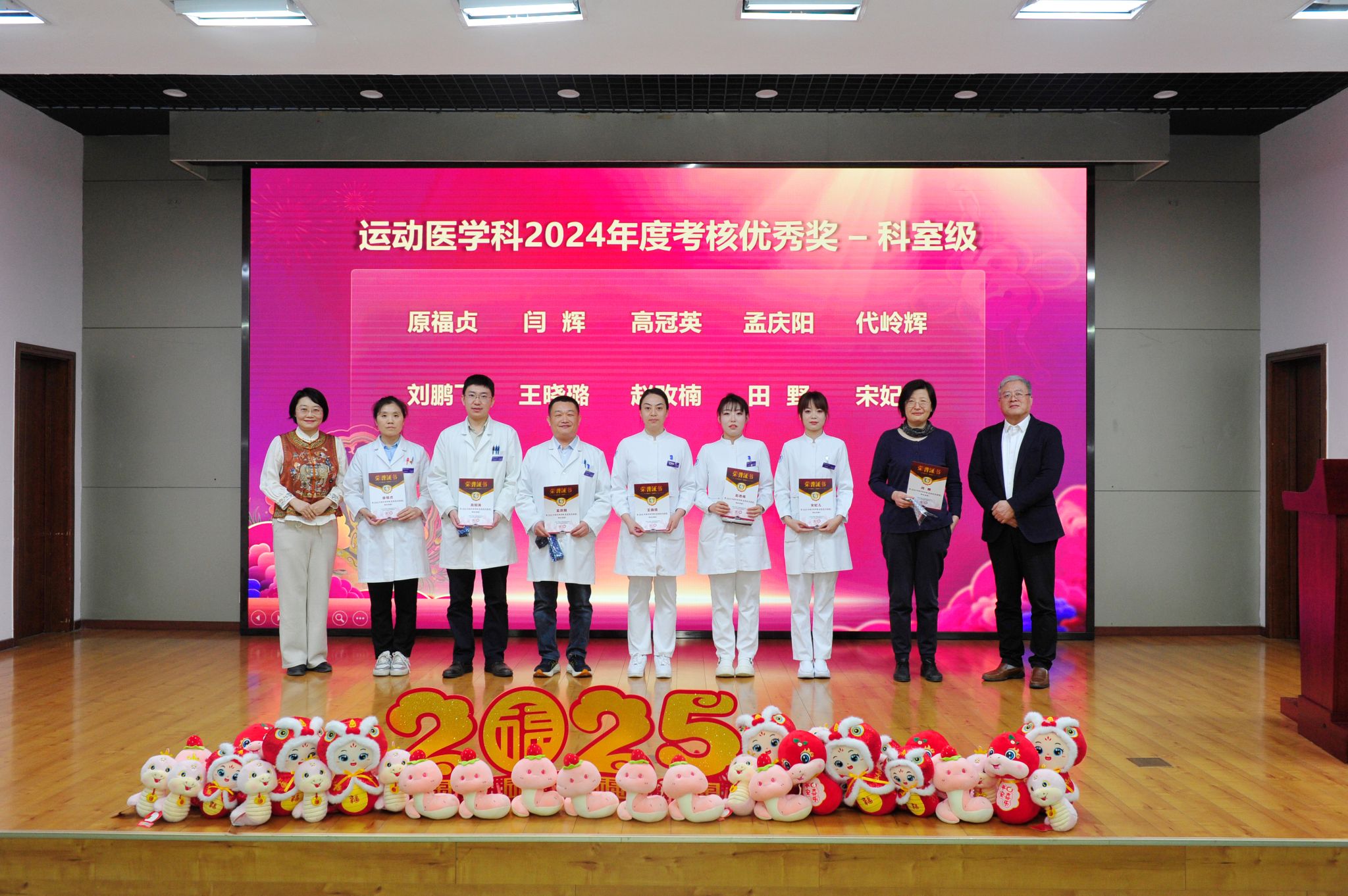 辉煌成绩的背后,是每一位运医人的辛勤付出和无私奉献,其中69位优秀个人接受表彰,由科室领导为他们颁奖。