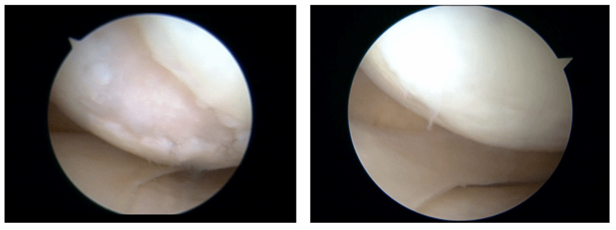 胫骨高位截骨术后1年,关节镜下软骨和半月板表现