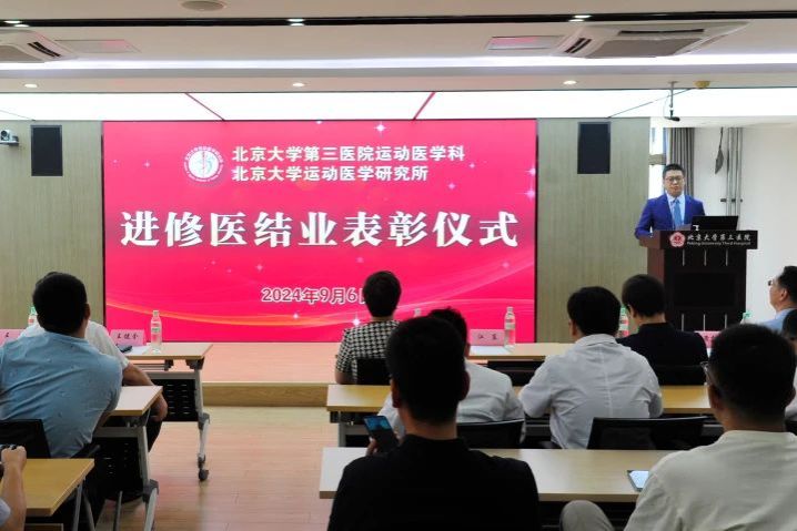 2024年9月6日上午,北京大学第三医院运动医学科(北京大学运动医学研究所)举行了2024年春季班进修医师工作总结表彰仪式,北医三院教育处副处长张祺、运动医学科核心组领导及医护代表、部分进修医师共计五十余人参加会议。本次会议不仅是大家学海生涯的阶段性总结,更是大家医学梦想的新启航。