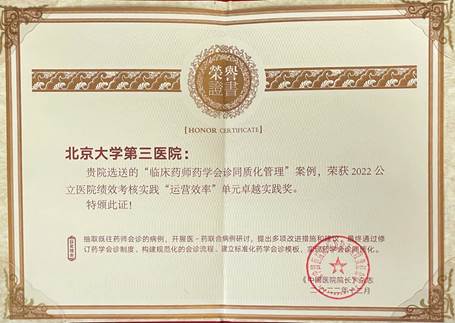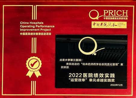 北医三院药剂科荣获2022公立医院绩效考核实践“运营效率”单元卓越实践奖