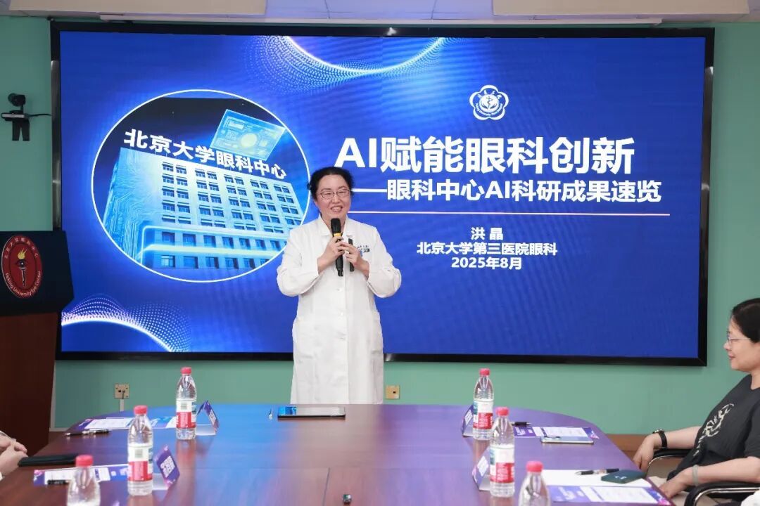 洪晶主任对眼科人工智能实验室的建设背景与阶段性成果作了系统介绍,围绕“AI辅助眼病诊断、眼病风险预测、眼-全身病关联研究、医工交叉应用、眼健康医疗管理、未来发展方向”六大模块展开,其重点成果包括: