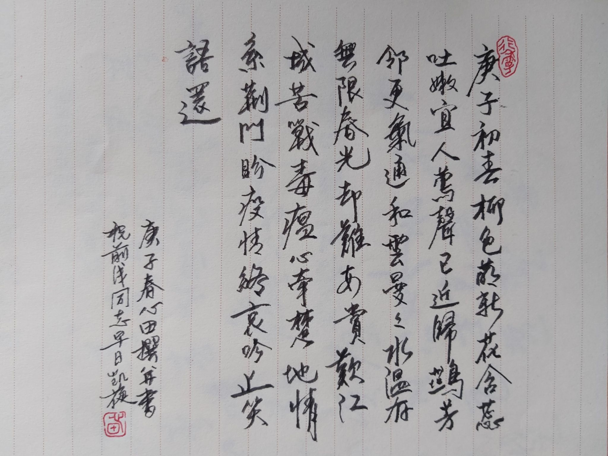 《行春子·盼》 职能处室联合工会小组二 赵心田 《武汉加油》 手术室 程燕燕 《夜空中最亮的星》 手术室 康洪量 《战必胜》 护理部 宋蕊 《战疫》 手术室 李甜甜 《长大》 泌尿外科 王璐 《中国加油,武汉...