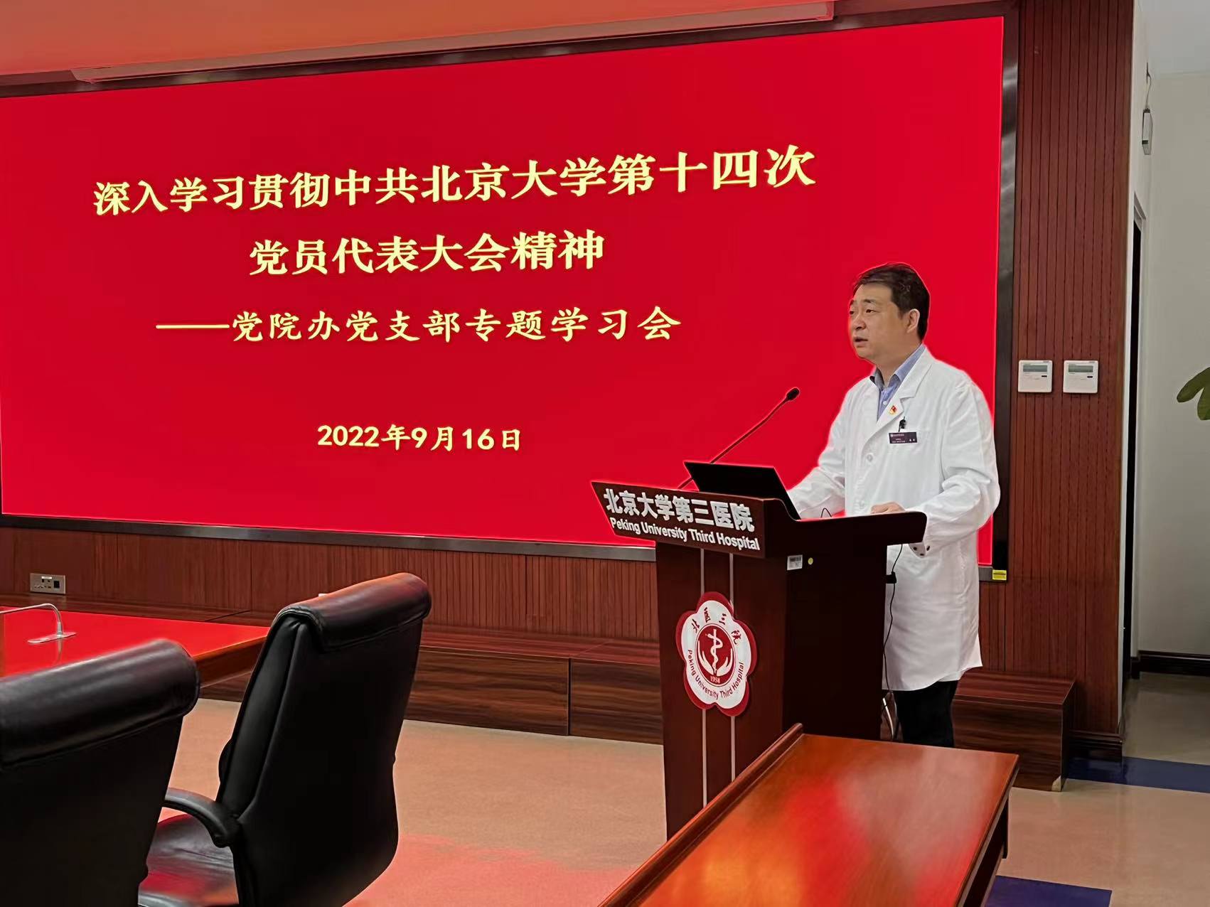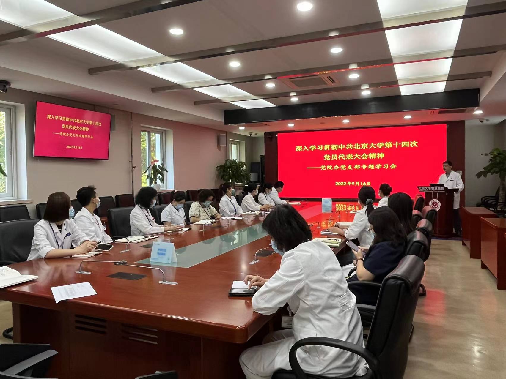 9月16日上午,党院办科室例会结束之后,党支部开展了北京大学第十四次党代会精神专题学习活动,党支部书记姜雪同志以PPT形式,对北京大学第十四次党代会报告重点内容进行了深入解读。