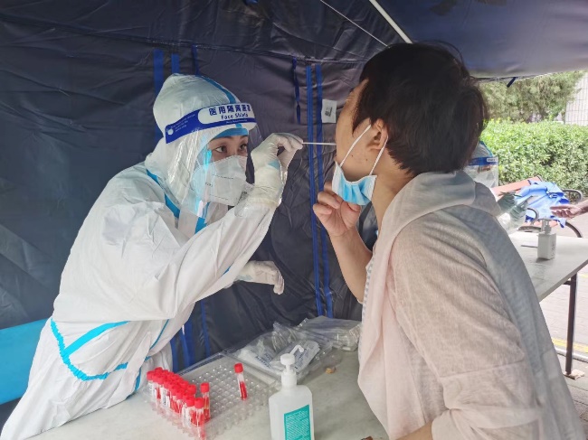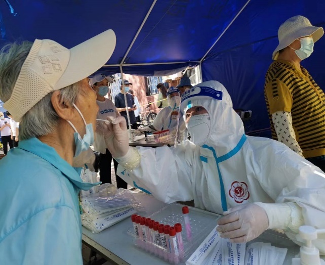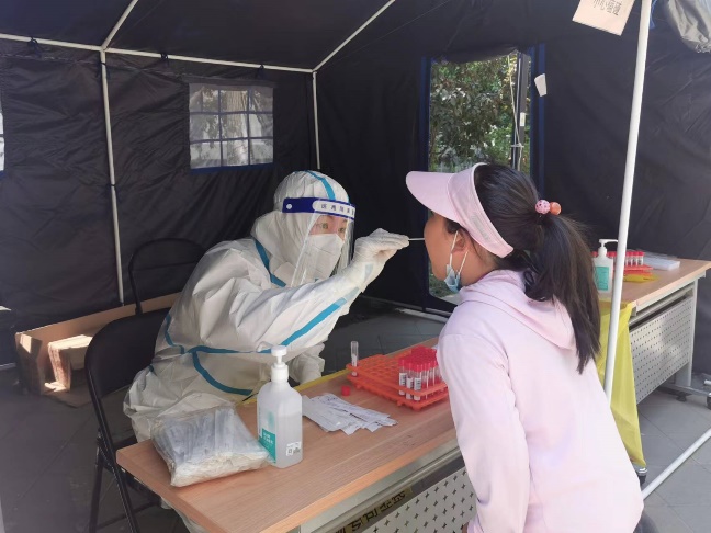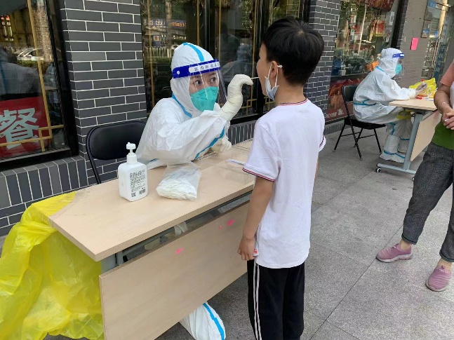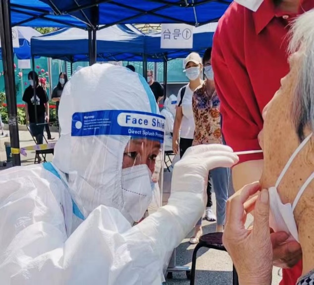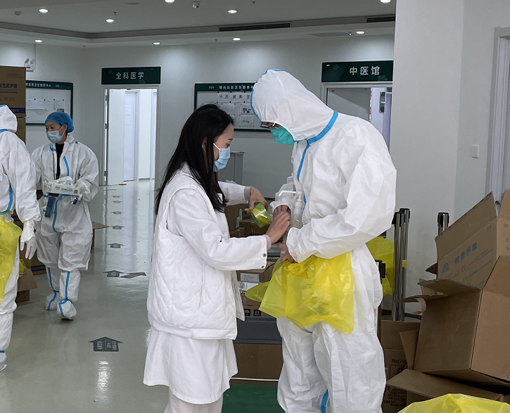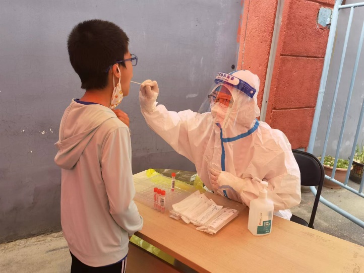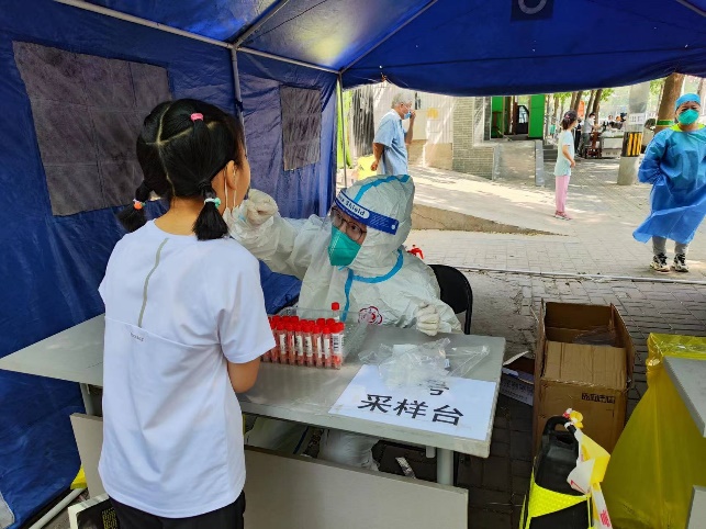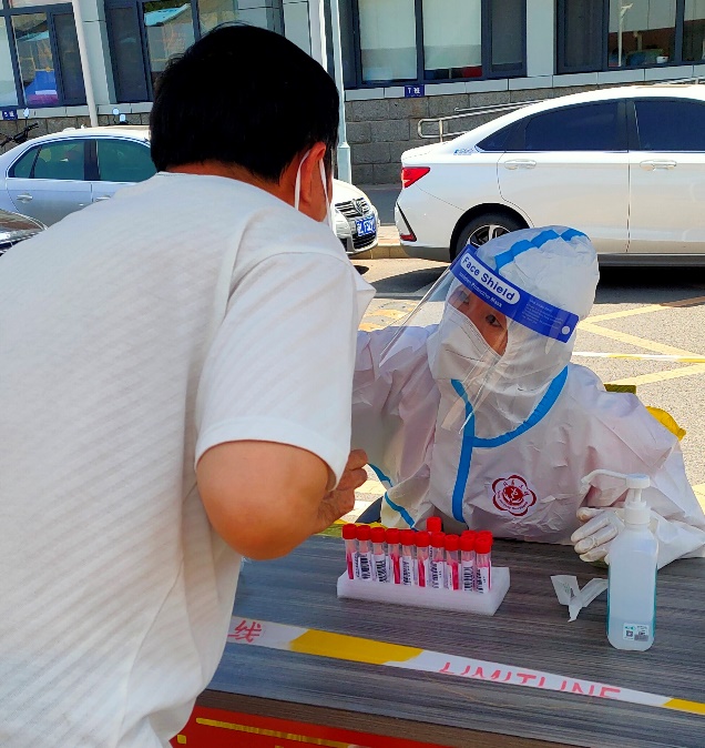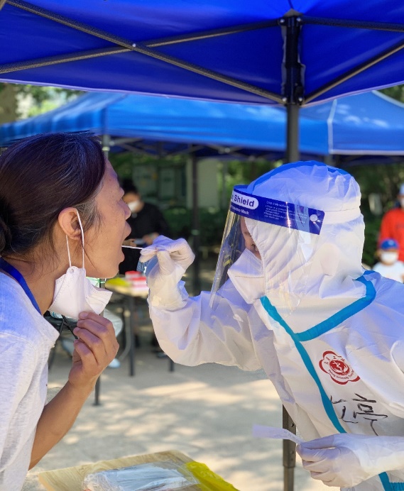 5月初北京疫情形势严峻,各个社区开展了大规模核酸筛查工作,我院接受任务并积极支援社区核酸检测,在这次任务中,职能处室工作人员突显担当,积极加入到采样队伍中,发挥了重要作用。党院办支部和工会积极响应医院号召,共有10人参加这项任务,她们是王剑、韩巧慧、王学英、李文君、郭儒雅、陈雪瑶、李顿晴、李婷、冯英、翟京,她们穿上厚厚的隔离衣,作为“大白”不畏炎热、不惧病毒,以积极的态度、昂扬的斗志,规范的操作投入到这场没有硝烟的特殊战斗中,与战友们互相支持、并肩作战,出色地完成了各项任务。(文/齐红)