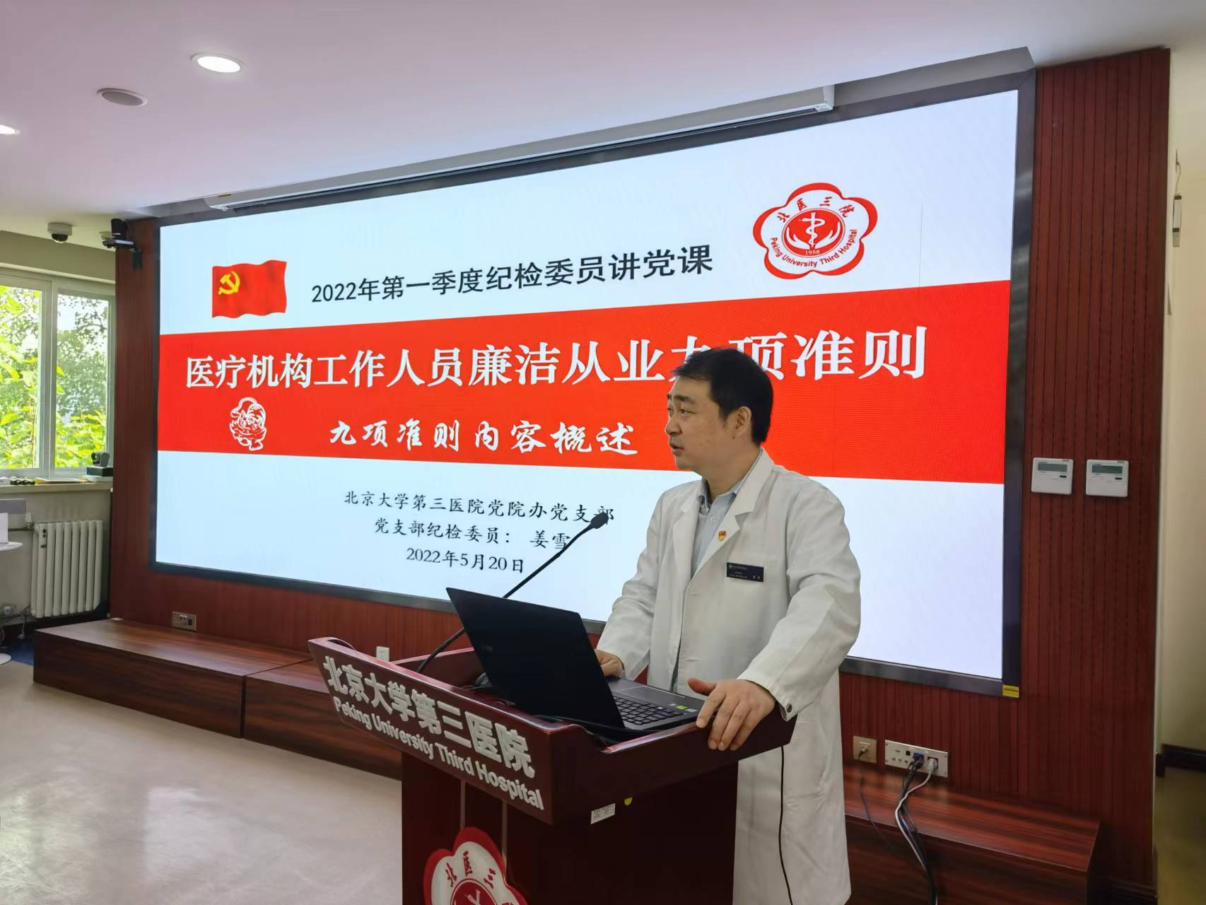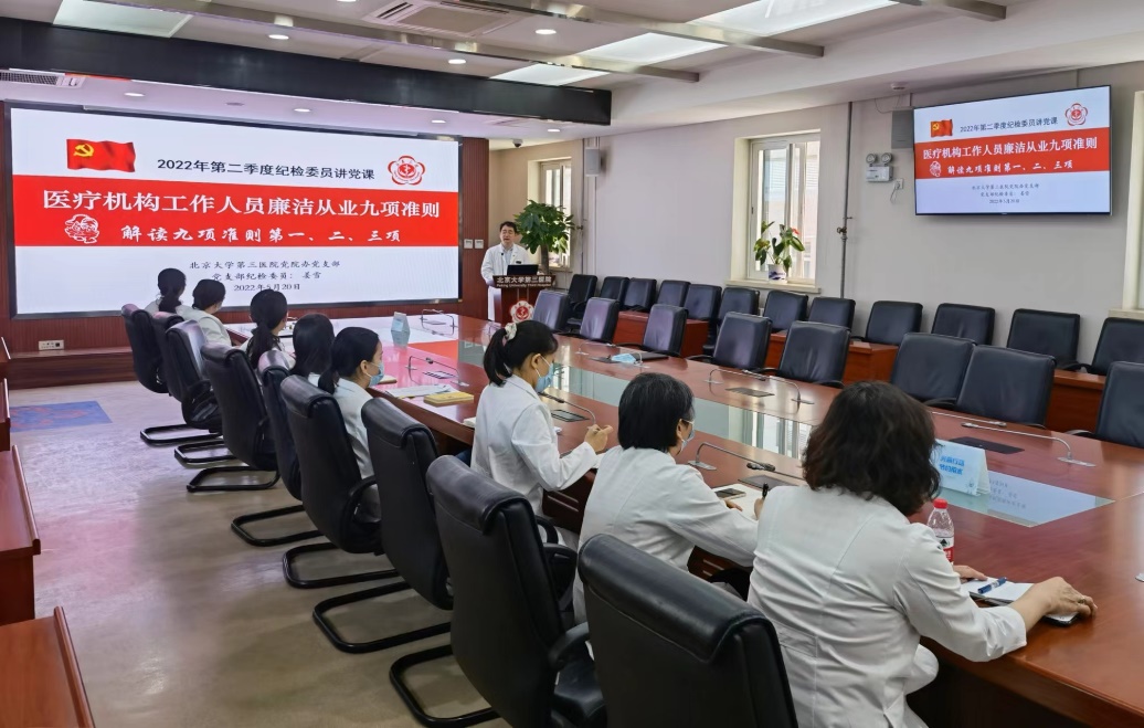 5月20日,党院办科会结束后,党支部开展了纪检委员“每季一课”讲党课系列活动第一讲和第二讲——《医疗机构工作人员廉洁从业九项准则——九项准则内容概述》和《医疗机构工作人员廉洁从业九项准则——解读九项准则第1-3项》学习。