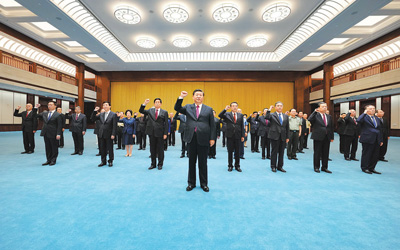 6月18日,党和国家领导人习近平、李克强、栗战书、汪洋、王沪宁、赵乐际、韩正、王岐山等在中国共产党历史展览馆参观“‘不忘初心、牢记使命’中国共产党历史展览”。新华社记者 鞠 鹏摄 6月18日,党和国家领导人习...
