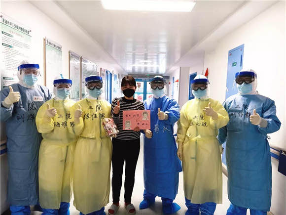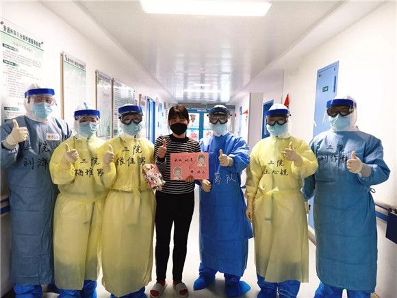二月十九日,北医三院国家援鄂抗疫医疗队队员与治愈出院患者合影。王永洁摄 逆行,逆行! 增援,增援! 疫情发生以来,全国广大医务工作者迎难而上,奋不顾身,同时间赛跑,与病魔较量,弘扬“敬佑生命、救死扶伤、甘...
