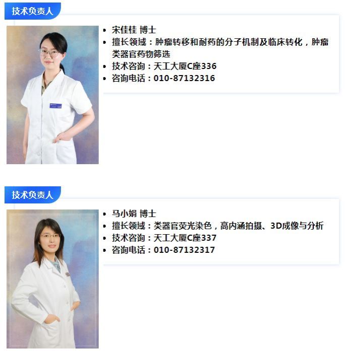 类器官培养方案开发、类器官传代、冻存、铺板、化疗/靶向药物筛选、新药筛选、细胞活力检测、免疫荧光染色、病理染色及单细胞测序建库、类器官-免疫细胞共培养等。