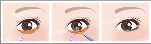 手术过程:医生从眼睑内结膜处做微小切口,将导致眼袋膨出的眶隔内脂肪部分切除。术后切口可自行愈合,无需缝合,因此皮肤表面不会留下任何痕迹。从这一点来说,它确实实现了“无痕”。
