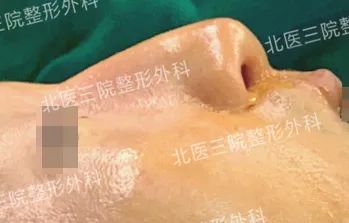 我们医生经过术前检查和讨论,采取“用最小代价来达到最大效果”的修复原则,最终制定了多种方式干预的序贯治疗方案,术中发现鼻背处都是骨粉,去除了鼻背骨粉,截骨改善宽鼻、歪鼻畸形及开放式屋顶畸形,修复了鼻中隔偏曲,另外考虑到患者鼻部皮肤张力大,医生利用具有强支撑能力的肋软骨唇裂鼻支架结构进行了鼻部解剖结构复位,为患者塑造了一个相对自然的鼻外形。