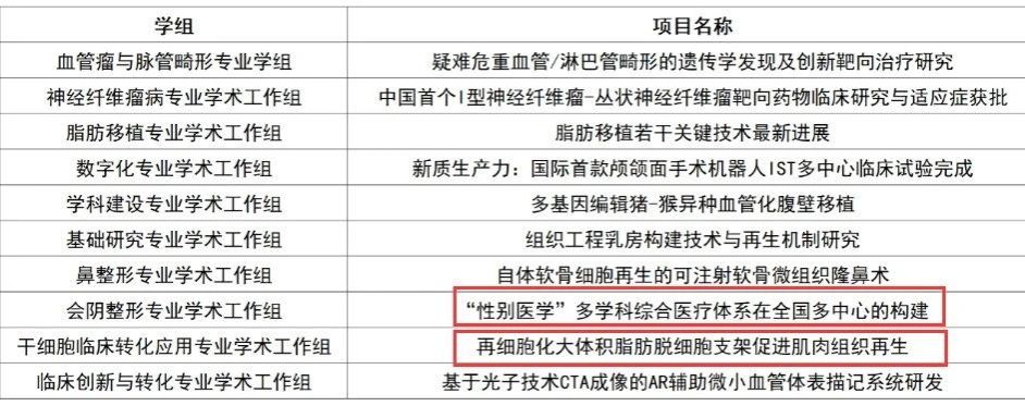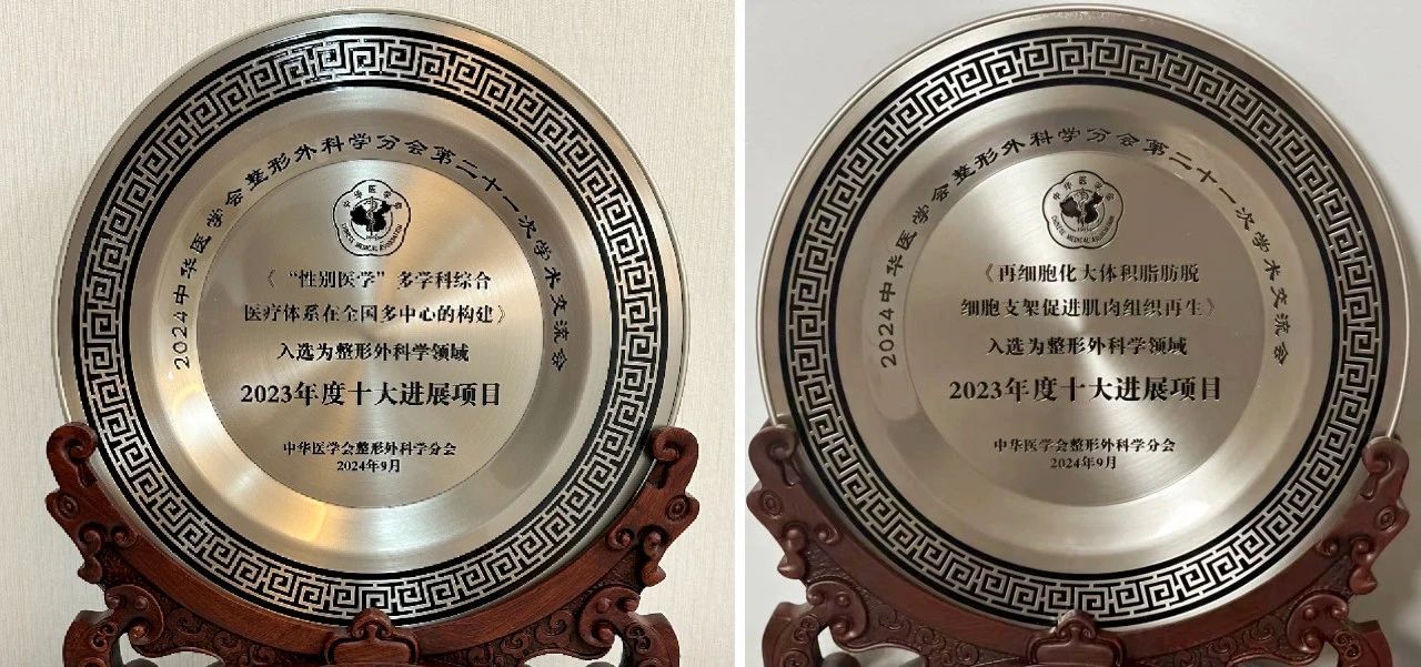 此次大会隆重揭晓了中华医学会整形外科学分会评选出的“2023年度中国整形外科领域十大进展”,其中,北京大学第三医院入选两项,分别是成形外科潘柏林医生团队的“性别医学多学科综合医疗体系在全国多中心的构建”项目及安阳医生团队的“再细胞化大体积脂肪脱细胞支架促进肌肉组织再生”项目。