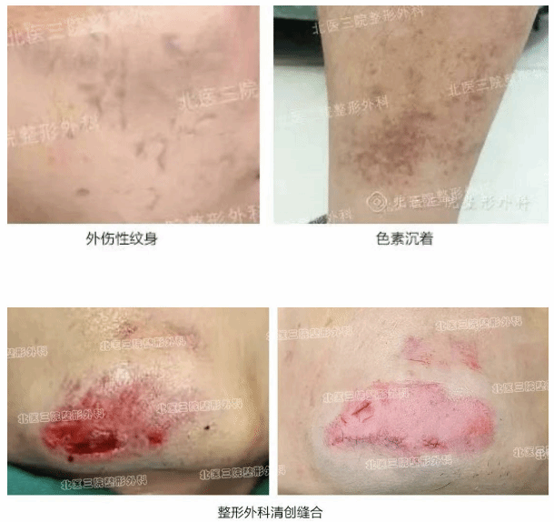 整形外科医生会更加彻底地清创清除异物残留,甚至仔细判断组织的健康程度,仔细操作保留健康组织,清除不健康的组织,利用整形外科缝合技术,尽量让瘢痕不明显。