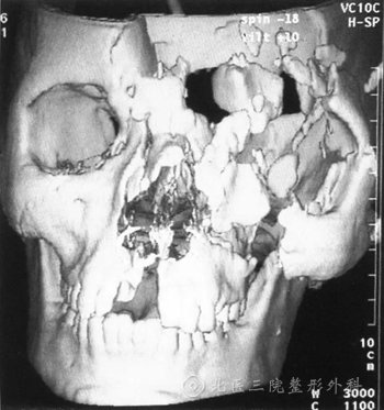三维CT扫描显示颅颌面部外伤性骨折的整体情况
