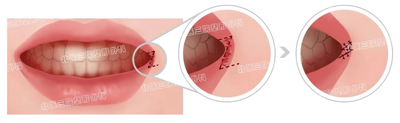 附~口角蹼状瘢痕切除后进行“Z”成形修复术示意图