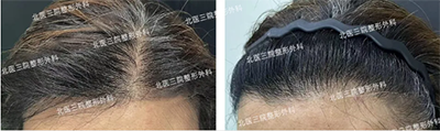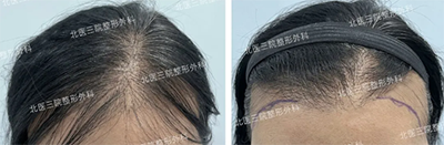 下面这位求美者在其他地方进行了发际线植发手术,术后不太自然(如图1),来到北医三院整形外科进行修复手术。