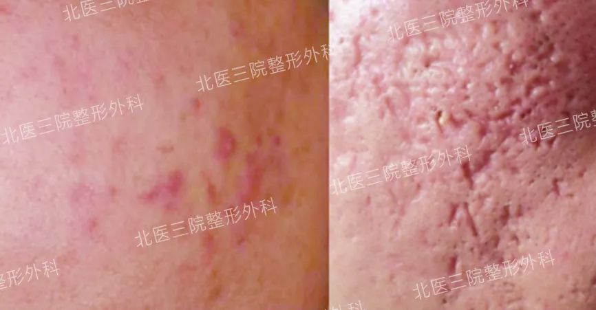 这其中还包括了痘坑,即痘痘消除后遗留的深浅不一的凹陷瘢痕。痘坑周围皮肤一般较为粗糙,部分患者伴有色素沉着,仅靠一般的护肤品无法解决,此时可以借助激光改善。