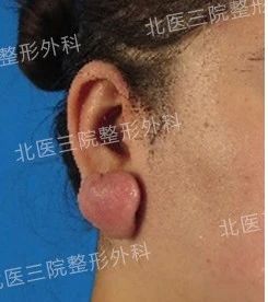 2年前该患者打耳洞以后,耳洞穿刺部位逐渐出现了瘢痕增生,同时出现了瘙痒、疼痛难耐的症状,慢慢形成了体积巨大的“疙瘩”,耳垂形态几近消失,看起来耳垂几乎像被瘢痕疙瘩“吃掉”了一样,严重影响外观,这对患者造成了极大困扰,患者强烈要求治疗。