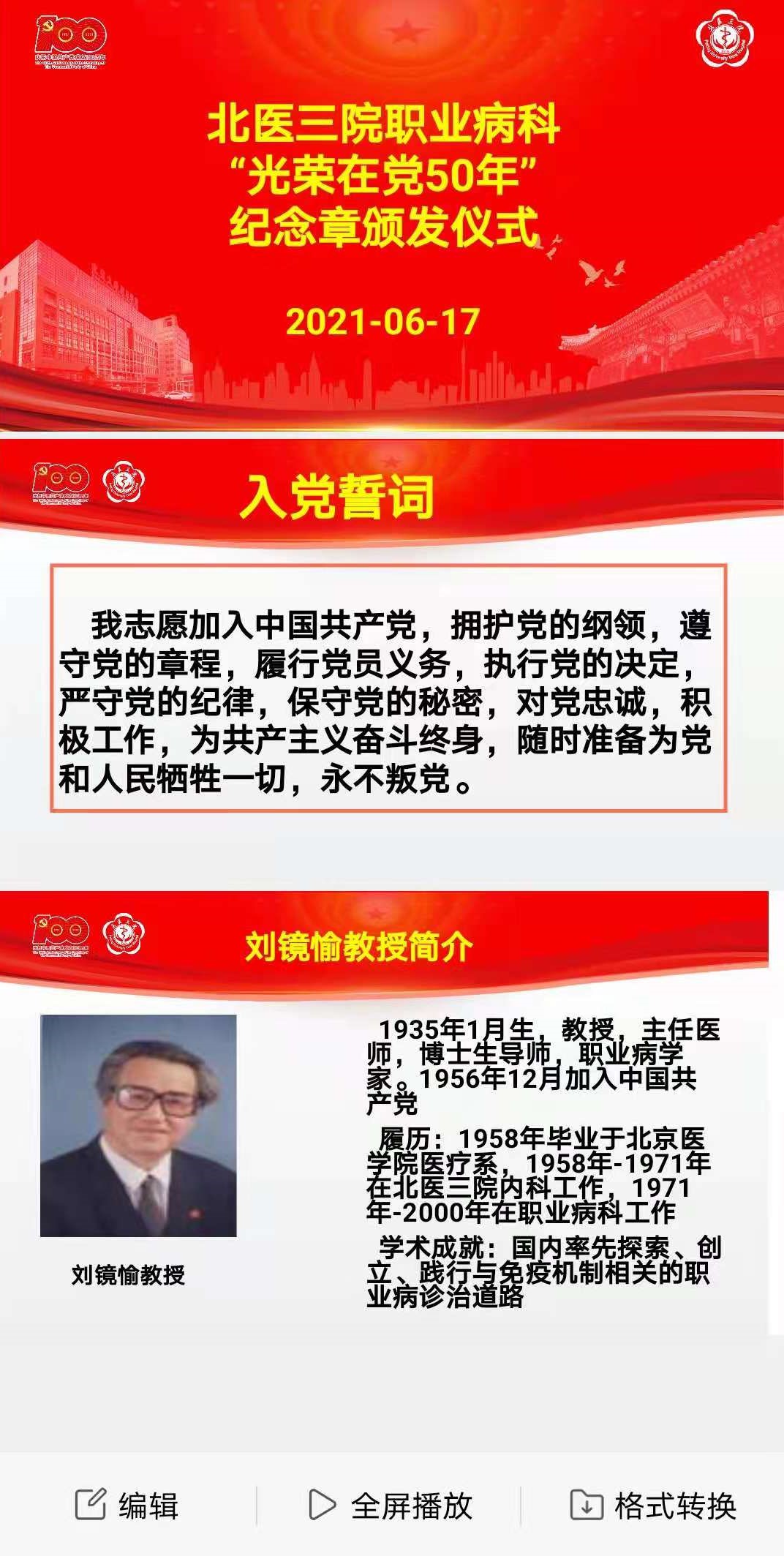 刘镜愉教授交流座谈会暨职业病科“光荣在党50年”纪念章颁发仪式