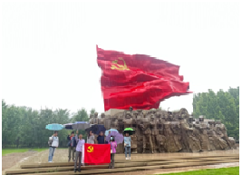 经过掠燕湖,大家走近满载信仰的红船,这艘1:1仿制的“红船”和旁边的“一大代表”群雕像以及题写有“不忘初心”匾额的凉亭,组成了中央党校校园内别具特色的党性教育基地。有了这艘红船,湖水仿佛有了灵魂,更显厚重。看到它,把大家仿佛带到了百年前烟雾迷蒙的嘉兴南湖。那是一个雨后天晴的黄昏,不远处的湖面上,也漂浮着这样一艘画舫。画舫里,10多位游人打扮的年轻文人再也无法抑制内心的激情,齐声发出低沉的呼喊:“第三国际万岁!”“中国共产党万岁!”犹如一个新生儿哇哇坠地,伴随这呐喊声,一个肩负重大使命的政党从此诞生。就在这样一个狭小的船舱里,代表们完成了一大全部议程,然后,各自踏上征程。他们明白,前面的路,是黑夜黎明、晓风残月,或者还有惊涛骇浪、血雨腥风。他们为了一个信念、一个理想,义无反顾,勇往直前,以至献出生命。大家身临其境,仿佛回到了小小红船播下中国革命的火种、开启中国共产党跨世纪航程的那一历史性时刻。这时候,掠燕湖里,几只天鹅悠然自得地从红船侧畔游弋而过,让人沉思:大雁和天鹅,又称鸿鹄,这些革命先烈不正是因为怀抱鸿鹄之志才赴汤蹈火、视死如归么?