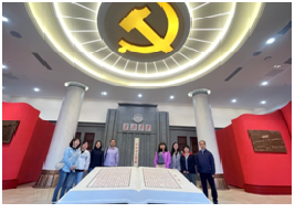 最后,大家来到校史馆参观。随着一面仿延安时期中央党校正门的砖墙缓缓打开,一个沿三层楼房布局的校史馆映入参观者的眼帘。一幅幅历史照片、一段段文字说明、一个个实物展示,编排出一道“时光长廊”,把人们带向了中央党校建校91年来的难忘岁月。从狭小简陋的院落到如今开阔大气、风景旖旎的校园,从第一批百余名学员扩展到如今几千人的在校学员规模,中央党校栉风沐雨,走过了万水千山。大家拾级而上步入展厅,被带往时间深处,与那些凝结了历史底蕴的文物、饱含革命热情的文字相遇。跟随讲解员,我们走进战火纷飞的峥嵘岁月,回望出发的地方。厅内摆放的一张老照片已经光影斑驳,照片上是几间由土砖垒筑的砖瓦房,墙面在风雨冲刷侵蚀下尽显沧桑。这座破旧清寒的土房位于江西瑞金叶坪洋溪村,是1933年3月13日成立的马克思共产主义学校,也就是中央党校的前身。在这里,任弼时、张闻天、李维汉等老一辈革命家,在残酷的战争环境下构建了难得的一方求知净土,锻造了一批信仰坚定的共产主义战士。就是这样一个不起眼的小院落,见证了我们党干部教育事业的星星之火,开启了党校人奋斗求索的光辉征途。“一切向前走,都不能忘记走过的路;走得再远、走到再光辉的未来,也不能忘记走过的过去,不能忘记为什么出发。” 时间的镜头推回1942年的延安。2月1日,中央党校举行开学典礼,毛泽东作了《整顿党的作风》的报告,他将主观主义、宗派主义、党八股生动比喻为“不过是一股逆风,一股歪风,是从防空洞里跑出来的”,号召“我们全党都要来做这个塞洞工作”。彼时的中央党校,集中了各根据地及各方面的大批领导骨干,是全党整风运动的“大本营”,是当之无愧的思想锻造熔炉。延安时期中央党校形成的学术传统和理论传统,也成为了党校事业的宝贵精神财富,代代相传、历久弥新。“中央在这里,党校在这里,七大在这里开,这个问题解决了,中华民族就胜利了。”毛泽东在党的七大上,对整风问题有这样一句总结。他的这句话,足见中央党校不可替代的特殊地位与分量。因党而立,因党而兴。伴随着党的事业的蓬勃发展,中央党校坚定沉稳地一路向前,“为党育才、为党献策”的初心矢志未改。在《理论动态》第60期的封面及相关手稿前,大家驻足良久。1978年5月10日,这一期杂志刊发了一篇载入史册的雄文,就是数易其稿,并经胡耀邦审定的《实践是检验真理的唯一标准》,由此打响了真理标准问题讨论的“第一枪”。纸张在岁月中泛黄,但这些深刻的论断,今天读来依然振聋发聩。每当在党和国家事业发展的重要时刻,中央党校总是思潮涌动、先声夺人。思想理论的火花不断激发,终于变成了熊熊的火焰。大家边走边看,每一个物件都承载着一段珍贵的往事,每一张照片都定格了一个璀璨的瞬间。它们串联起党校90余年的光荣历史,传递着坚毅的力量。不觉已到了展厅的尽头,这里的一片留白引人遐思。我们看到中央党校如何从过往走来,更期待她将如何奋楫当下、奋进远方。